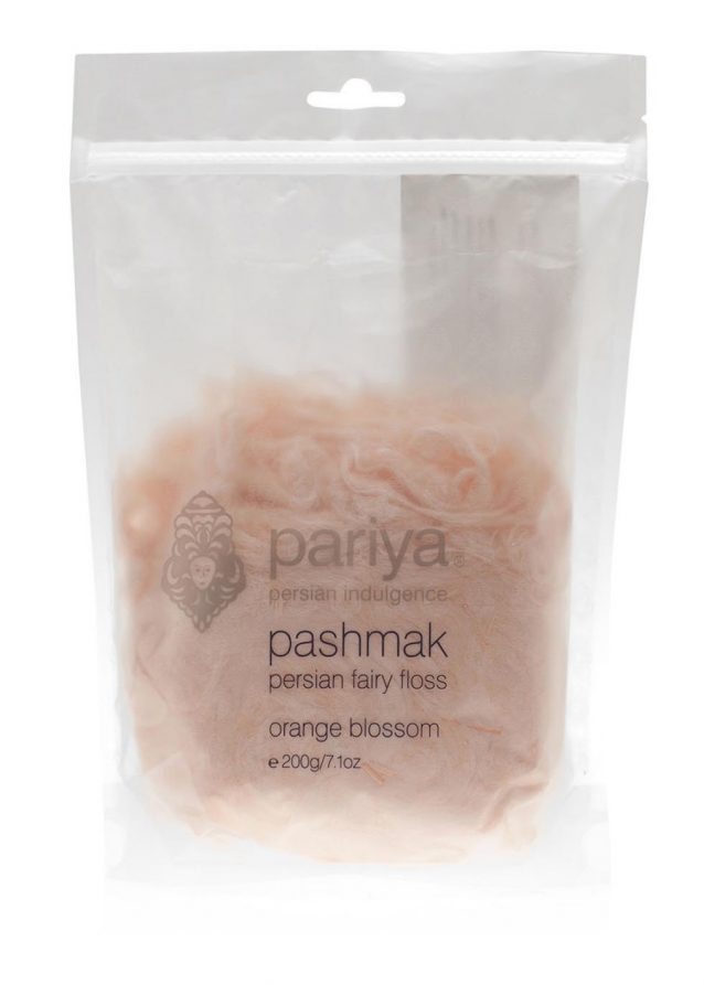 Pashmak is een soort Perzische suikerspin met lange, wollige draden. Die eten ze niet vanaf een stokje, zoals op de kermis, maar gebruiken ze om desserts extra feestelijk (en lekker) te maken. Dat noemen wij nou eye-candy. Deze pashmak wordt verkocht via Harveynichols.com.