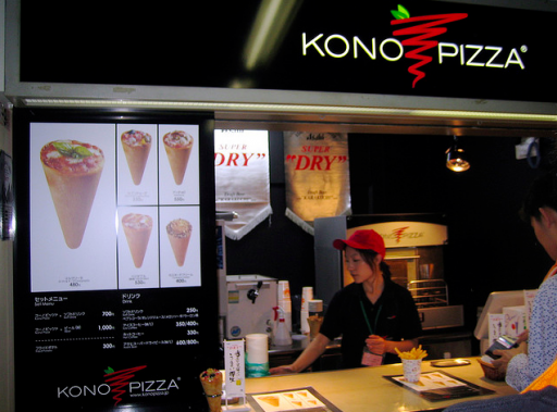 Het Italiaanse bedrijf Kono Pizza bedacht dat het eten van een pizza veel makkelijker kan. En dan wel in een cone, oftewel een ijshoorntje.