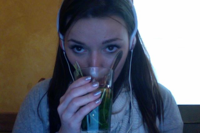Altijd als ik dit zo thee drink, ben ik bang dat ik mijn oog uitlepel met de achterkant van die lange lepel!