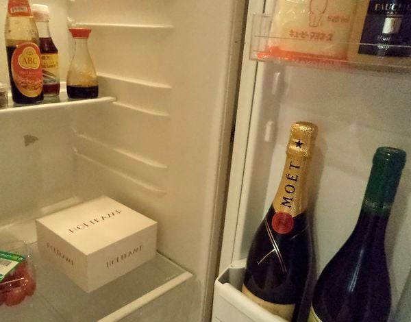Haha, die echoot een beetje. Een fles Moët & Chandon en nog een restje cheesecake van Holtkamp. Zo lekker! Zowel mijn man als ik maken lange dagen en de dag loopt vaak anders dan gepland. Dus weekboodschappen en vanuit een volle ijskast koken gaat bij ons niet op. Dan moeten we te vaak eten weggooien en dat gaat me aan het hart.