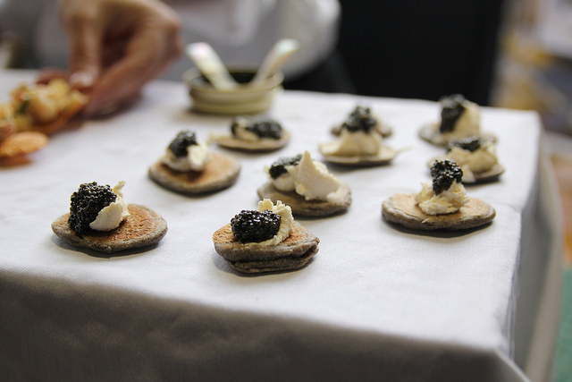 Kaviaar mag natuurlijk niet ontbreken in deze lijst. Deze (onbevruchte) eitjes van de steur worden in Rusland veel gegeten in combinatie met een glaasje wodka. Het leukste is natuurlijk om er wat anders mee te doen. Blini’s met zure room en kaviaar, of kaviaarsoesjes bijvoorbeeld. Dan heb je een wel heel bijzondere bittergarnituur….!