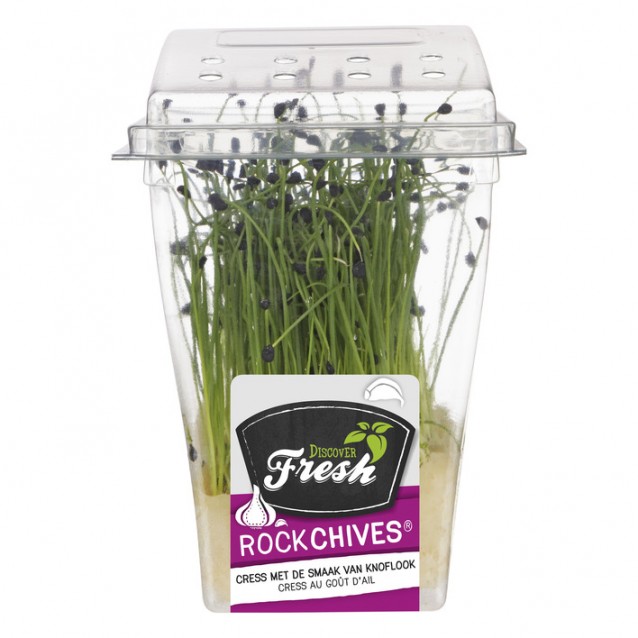 Rock chives is een cress met de smaak van knoflook, maar zonder de geur. Superlekker in kruidenboter, groente-, vlees- en visgerechten. Te koop bij Albert Heijn.