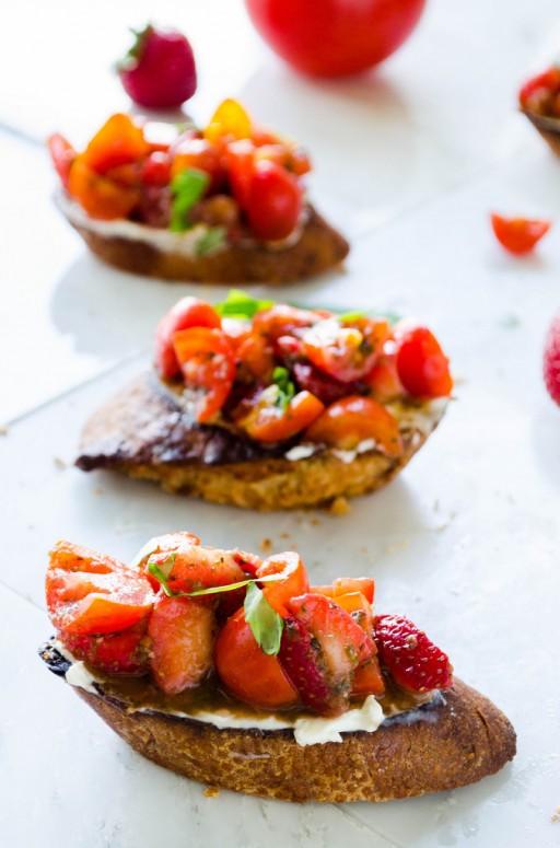 Crostini’s met aardbeien, tomaten & basilicum