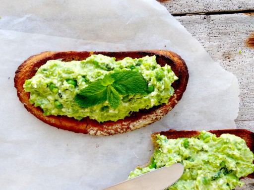 Crostini met doperwten, feta & munt-hummus