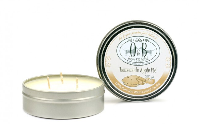 Laat je huis naar versgebakken appeltaart ruiken met deze kaars van Oscar en Babette. Te bestellen via oscarenbabette.com voor €7,95.