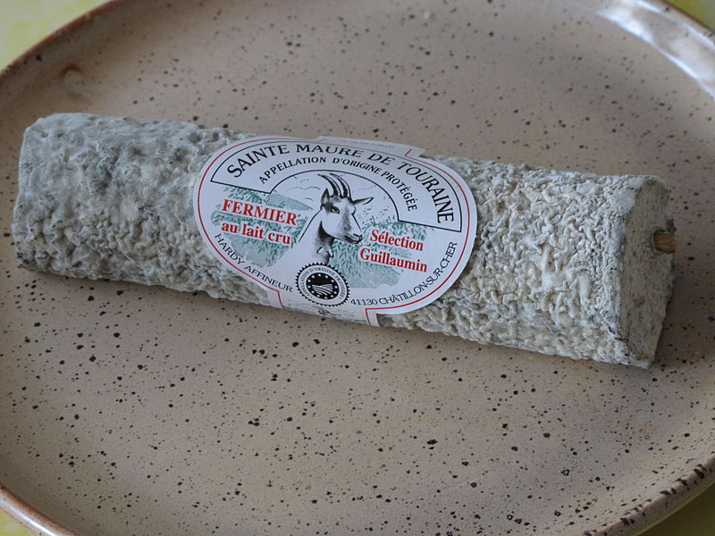 Een andere bekende is de Sainte-Maure de Touraine. Deze geitenkaas wordt gerijpt met een laagje van houtskool-as en kun je zien als de vader van de geitenkaas.