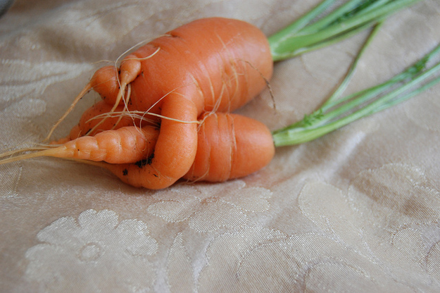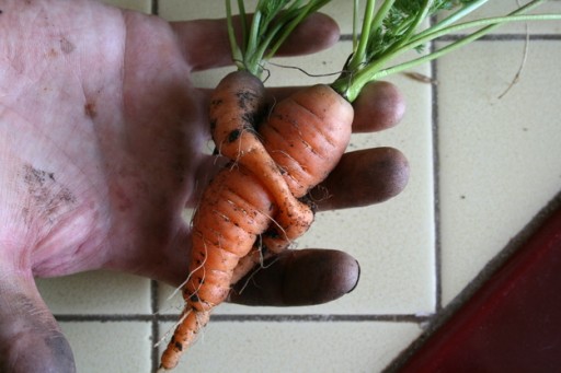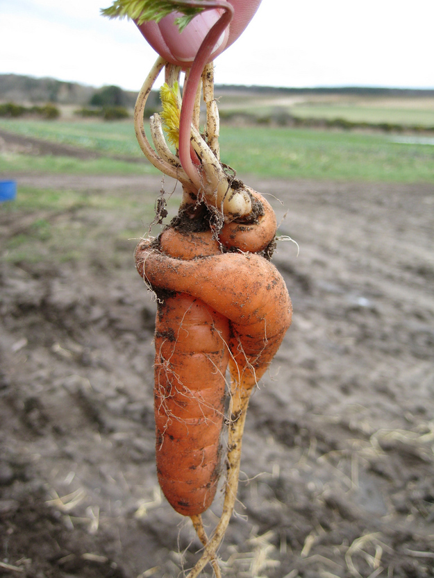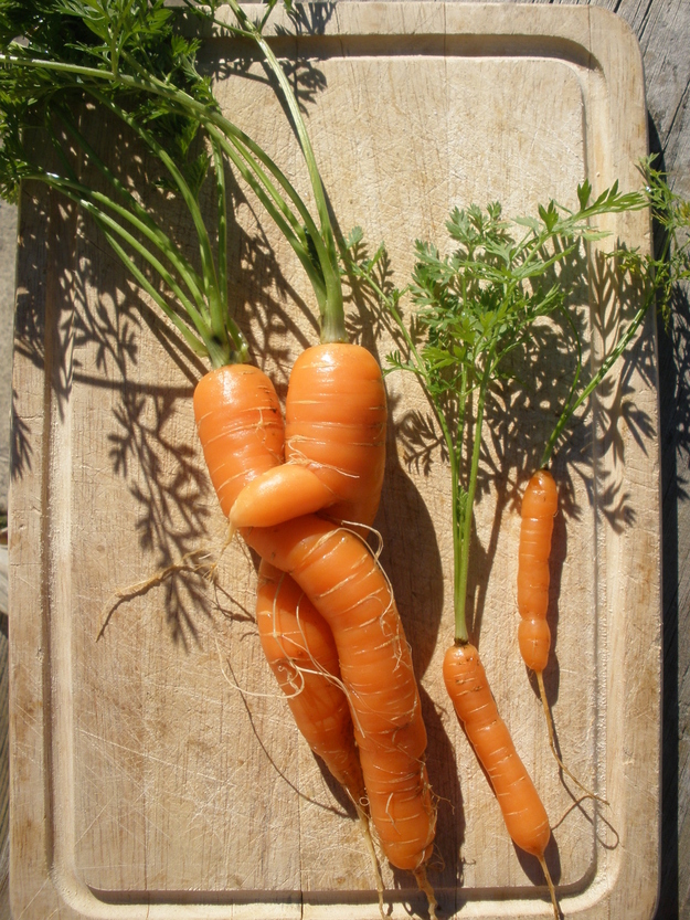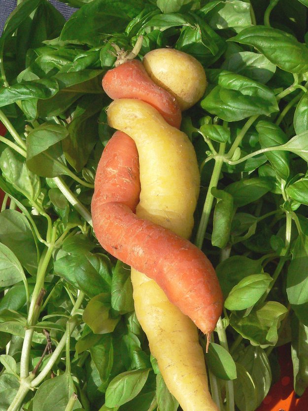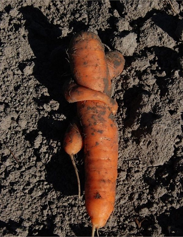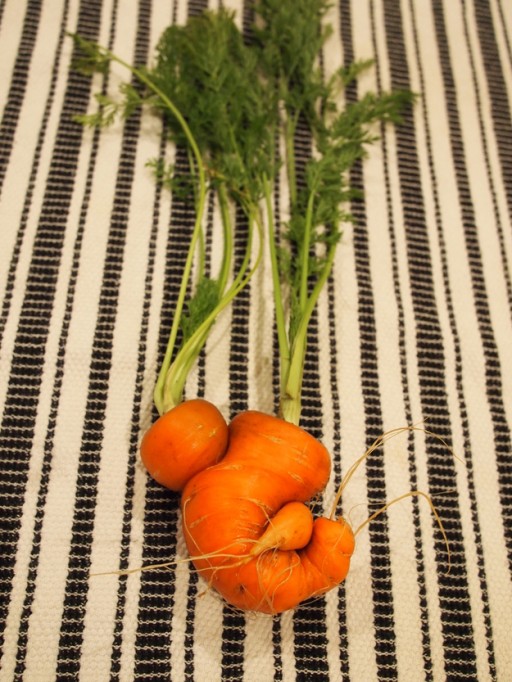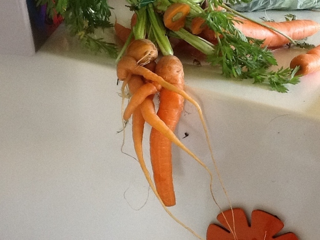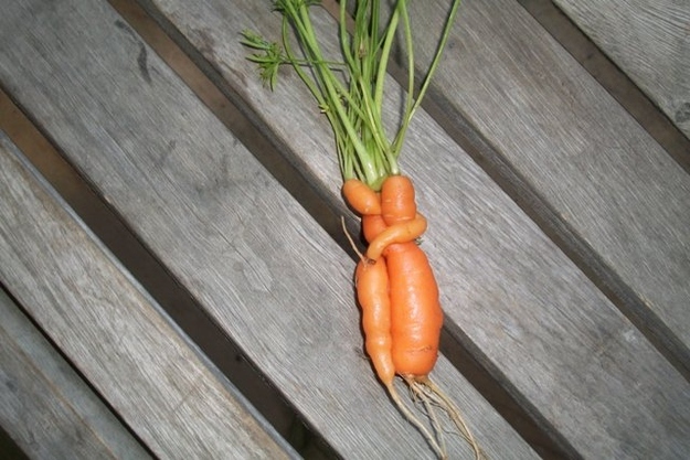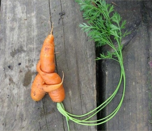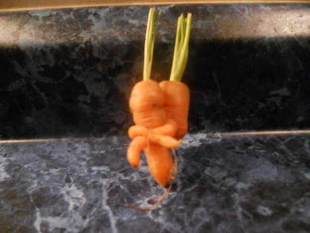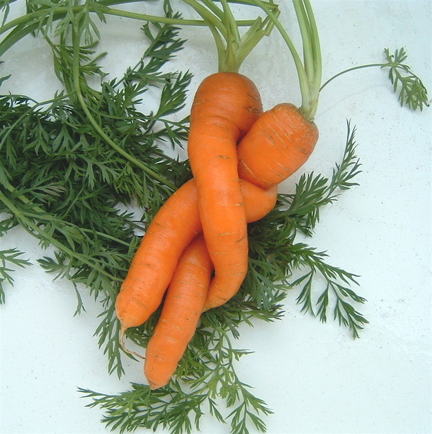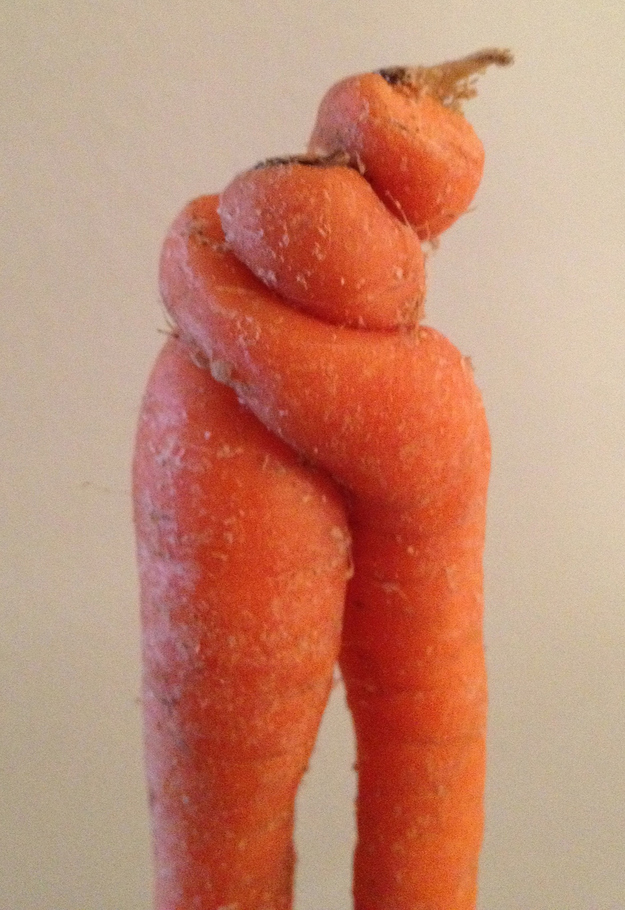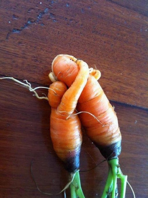 Zo lief, deze wortels geven elkaar graag een knuffel. Altijd leuk als je vrolijk fruit aantreft in de schappen, nietwaar?