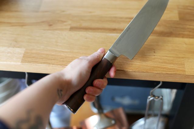 We hebben dit bijzondere mes natuurlijk direct getest in de Culy keuken. En oh, wat is dit een fijn koksmes. Het houten heft ligt fijn in de hand en het stalen mes is loei, maar dan ook loeischerp. Ideaal om vlees te snijden en pompoenen mee te lijf te gaan. Maar ook fijnere klusjes zoals uien snijden doet -ie goed.