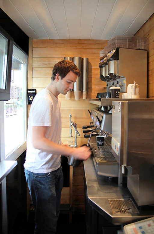 La Distributrice staat in Montreal en is naar verluid met ongeveer 3 vierkante meter de kleinste koffiesalon van Canada. Naast dat de salon ini-mini is, haal je hier – naar het schijnt – zalige koffie en hebben ze ook de mooiste koffiebekers.