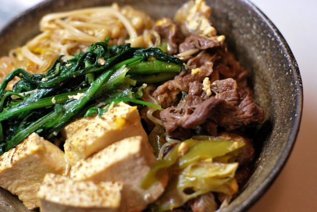 Hoewel de sukiyaki nog wordt geserveerd, is oyakodon hét gerecht waar iedereen voor komt en urenlang voor in de rij staat.