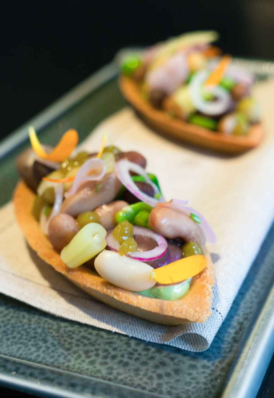 Met het gerecht brengt RIJKS een ode aan 30 variëteiten van de Hollandse boon, die we al ruim 500 jaar kunnen eten in Nederland. Van pronkboon tot Friese kapucijners: alle dertig zaten ze in één gerechtje, van ieder één. En heel vernuftig: de boontjes werden opgediend in een (ook ontzettend lekkere) tartelette die van kikkererwten was gemaakt.