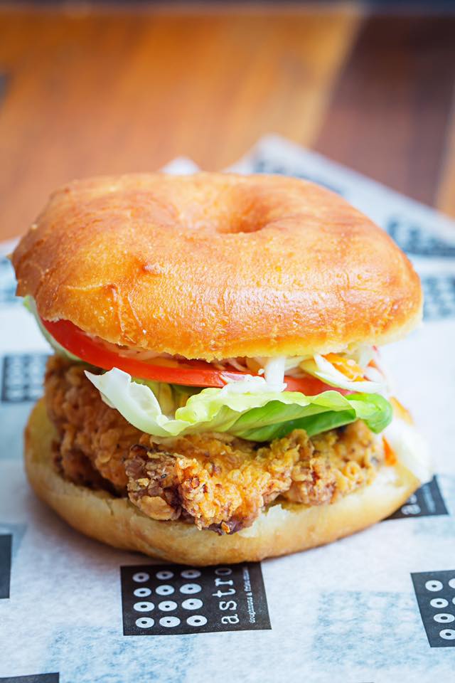 Astro Doughnuts & Fried Chicken is een keten uit Washington (Amerika) die deze guilty pleasure bedacht. Zij specialiseren zich in knapperige gefrituurde kip en donuts.