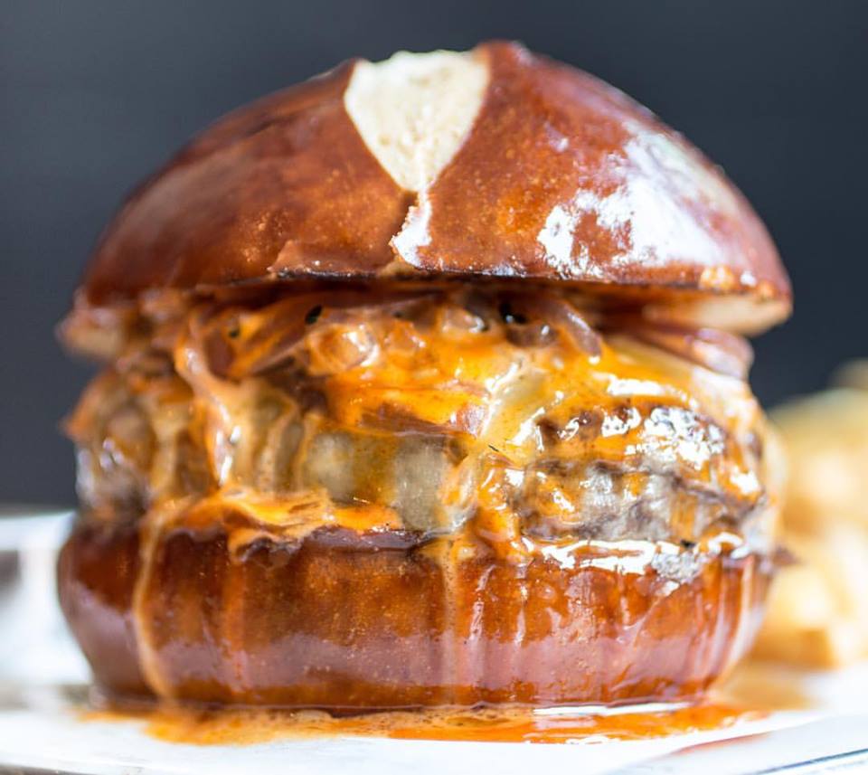Wát er precies op die burger zit, is niet helemaal duidelijk. Maar dat doet er ook niet toe: één hap en je bent verkocht. Ze gebruiken in ieder geval dry-aged rundvlees, ui, cheddar (véél cheddar) en een mysterieuze ‘Emmy-saus’. Ook niet onbelangrijk: het broodje is een pretzel-broodje.