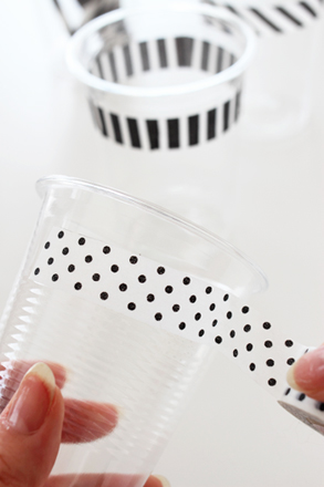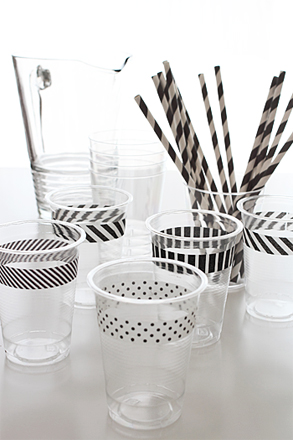 Het idee is simpel: laat je gasten zelf een stukje tape om hun glas doen of kies een leuke combinatie van kleuren en prints en laat je eigen creativiteit er op los. Resultaat: je (plastic) glazen zien er in een handomdraai fancy uit uit én je grijpt nooit per ongeluk naar het glas van je buurman. Wij zijn fan!