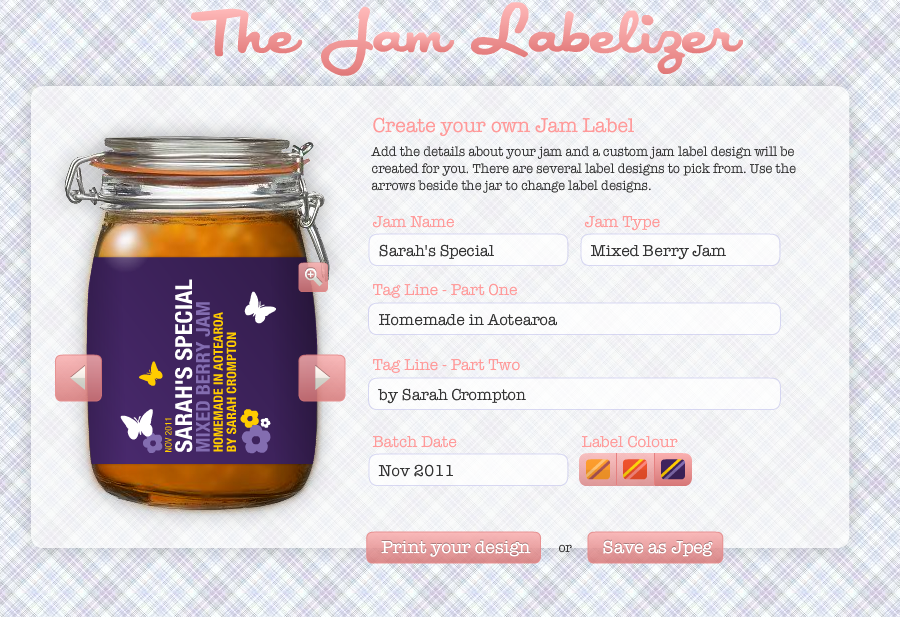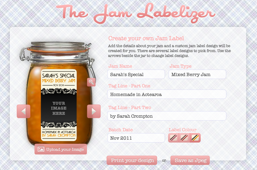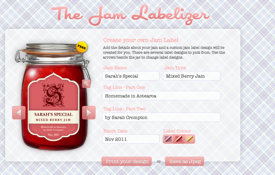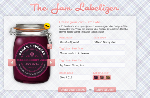 Op de website Jamlabelizer.com kan je heel simpel en gratis (!) ingeven wat voor soort jam je gemaakt hebt, de datum en natuurlijk de naam van je eigen jam. Ben je niet zo van de jam? Geen nood, vervang het woordje jam voor koekjes, smoothies of ander lekkers en ook jij kan je eigen label maken!