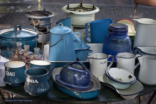 Emaille mokken en andere items kun je nu volop in winkels kopen of online bestellen. Onze favoriet is de webshop Comptoirdesobjets.com. Ook bij ‘hipster’ winkels als Six and Sons koop je prachtige, maar dure exemplaren, maar je kunt ze ook goedkoop krijgen, bij zaakjes die een iets minder hippe uitstraling hebben.