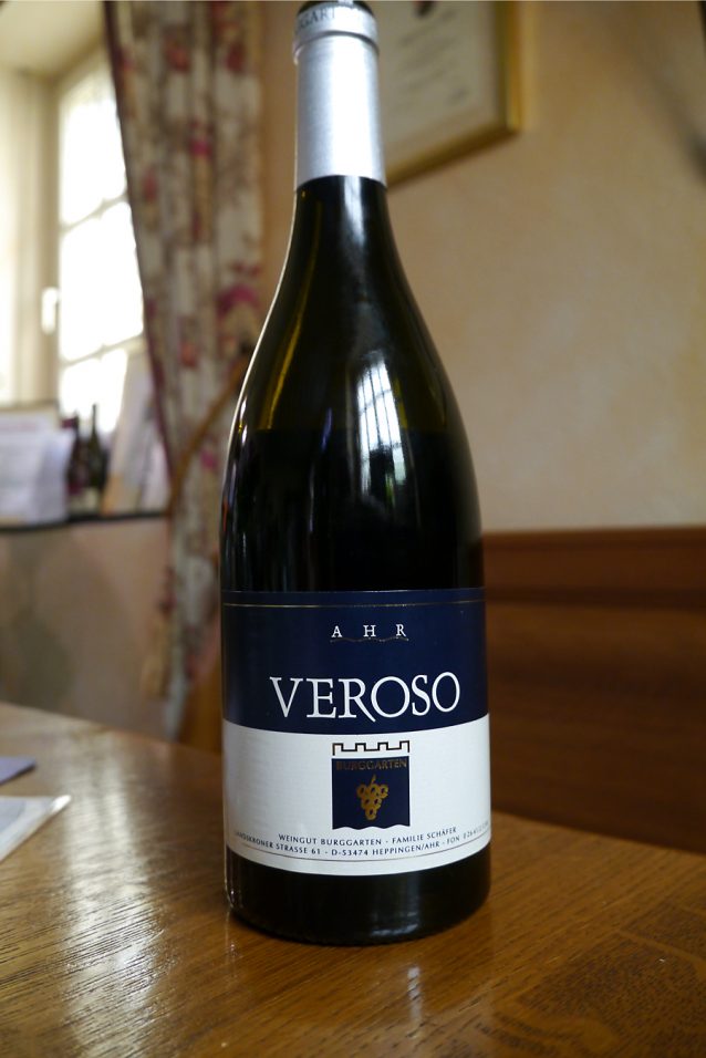 En we zitten in de Ahrstreek, en dat betekent dat je hier absoluut de rode wijnen moet proeven! Nog specifieker: de Spätburgunder zonder houtlagering. Heerlijk smaakt een mooie runderrollade heerlijk.