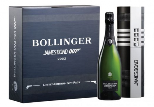 Volledig in stijl is de Bollinger La Grande Année 2002 – de meest bijzondere vintage champagne van het afgelopen decennium – verpakt in een huls die geïnspireerd is op het typische pistool van James Bond, de Walter PKK. De set, inclusief verpakking en fles champagne heet Bollinger 002 for 007.