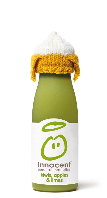 De goedgemutste Breicampagne van smoothiemerk ‘innocent’ is weer terug in Nederland. En dat betekent dat het smoothie-schap in november weer wordt opgevrolijkt met zelfgebreide mini-mutsjes op de dopjes van de flesjes.