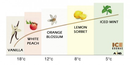 De ICE Cognac komt het best tot zijn recht in een tumbler met een dikke bodem, geschonken over meerdere ijsblokjes. Een ongebruikelijke combinatie die voor een verrassende smaakevolutie zorgt. Door het contact met ijs en water ontwikkelt de smaak zich geleidelijk. De ICE Cognac begint soepel en zacht met subtiele tonen van fruit. Naarmate de temperatuur daalt evolueert de smaak zich en komen de frisse aroma’s van citroensorbet en munt vrij; een compleet nieuwe ‘cognacervaring’.