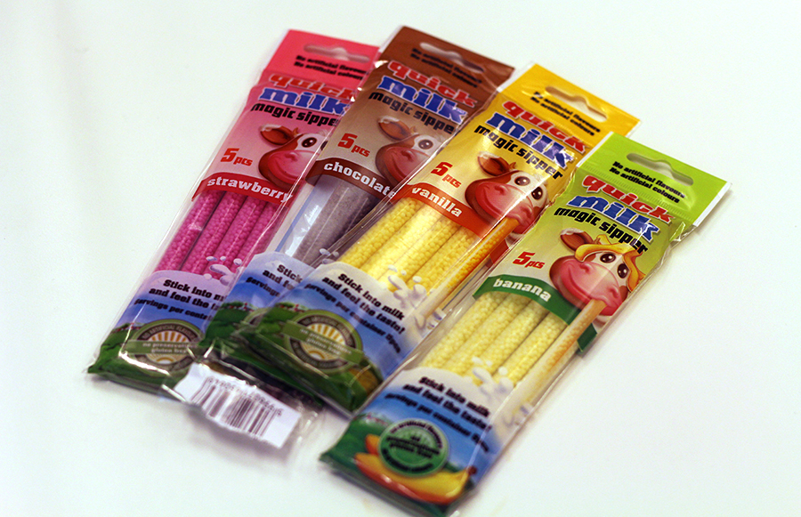 De rietjes zijn gevuld met gekleurde korreltjes die de smaak afgeven en op de verpakking staat dat je niet in het rietje hoeft te knippen. Door de melk te drinken komt namelijk de smaak vanzelf naar boven. Lekker makkelijk dus.