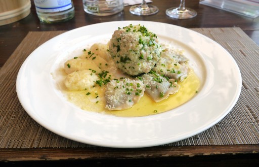 – Seehof Keller in Kaltern (Cadaro): heerlijke zeeduivel en St. Jacobsschelpen.
