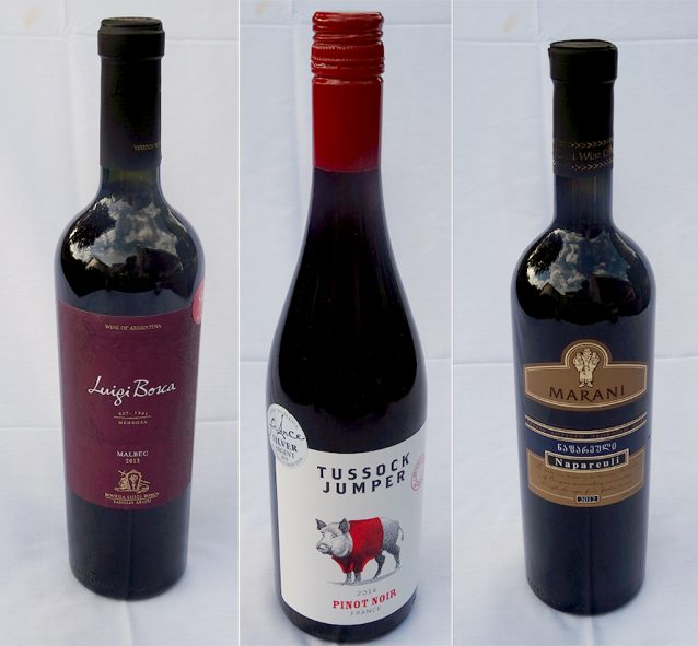 En de nummer 3: de Tussock Jumper Pinot Noir 2014. Geen uitgesproken Pinot Noir smaak, maar zachter. Deed het beter bij de wat lichtere BBQ-gerechten, maar bleef wel overeind bij de ‘zwaardere’. Te koop bij de Jumbo voor € 6,49.