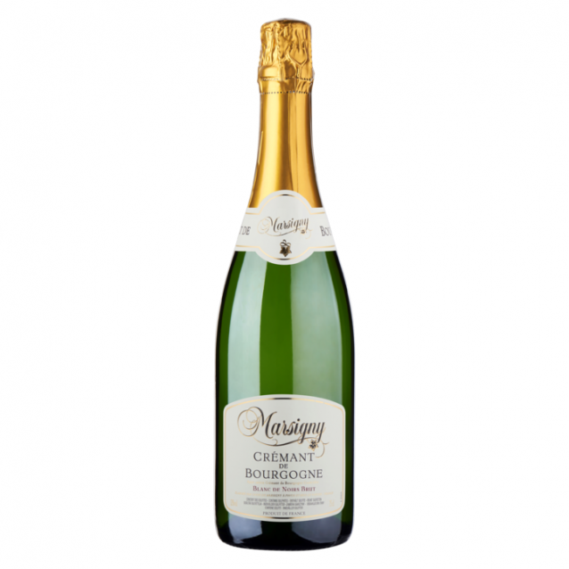 De Marsigny Crémant de Bourgogne. Deze is gemaakt van blauwe druiven (Gamay en Pinot Noir); maar ook het sap van deze druiven is blanc, waardoor er ‘witte’ champagne ontstaat (noemt men Blanc de Noirs). Te koop bij de Jumbo voor € 9,99. Niks mis mee, dus wat mij betreft een knallertje.