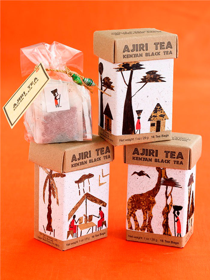 De zwarte thee uit Kenia van Ajiri Tea is niet alleen prachtig verpakt, maar gaat ook nog eens naar een goed dool: 100 procent van de winst gaat naar de Ajiri Foundation, die vrouwen in Kenia aan werk helpt en weeshuizen sponsort en draaiende houdt. Erg tof!