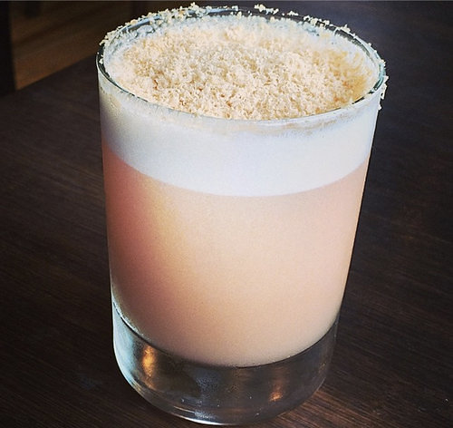 De cocktail, genaamd “Foie the Hell of It”, is gemaakt met appelbrandy, bourbon, citroensap, gembersiroop, gepureerde aardbeien- en rabarberjam, eiwit en een snufje peper. En dit alles wordt afgetopt met geraspte foie gras.