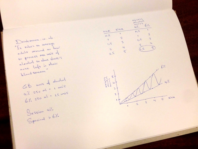 Als je goede vriendin Annie tijdens deze sessie ook een Session bier heeft gedronken heeft ze na tweeënhalf uur 2,5 ‘excess alcohol units’ in haar bloed, terwijl dit er 5 zijn voor goede vriend Bob omdat hij een bier van 6 procent heeft gedronken: hij heeft na 150 minuten lang bierdrinken dubbel zoveel alcohol in zijn bloed. Het alcoholresultaat is dat Annie net boven de wettelijke promillagegrens van 0,5 zit terwijl Bob al extra goed naar links en rechts moet kijken voordat hij fietsend de weg betreed.