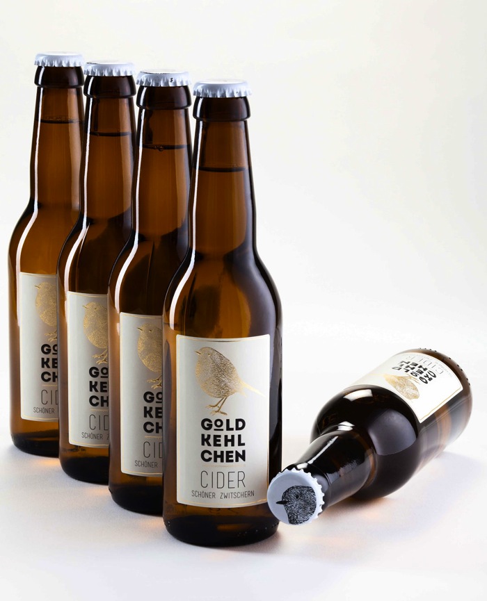 Bij een eersteklas drankje hoort natuurlijk ook een eersteklas verpakking. Daarom vroegen ze designbureau FFabienne een huisstijl te ontwikkelen voor hun zelf gebrouwen appelcider. De drank wordt gemaakt van met de hand geplukte appels uit Oostenrijk en er wordt geen suiker aan toegevoegd.