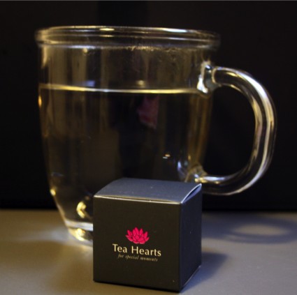 Culy testte de tea harts uit. Allereerst: het is een leuk concept, en grappig om cadeau te geven. De verpakking is overigens prachtig, maar wel erg kostbaar, omdat elk hartje los verpakt zit in een zakje. Maar dan: als je het zakje met het hartje in het hete water loslaat, lost het hartje binnen een seconde op, en is het gewoon losse thee. Een keer knipperen, en je hartje is weg. Da’s logisch, maar toch jammer. Daarna is het eigenlijk ‘gewone’ thee, er zit geen specifieke smaak aan; de smaak is te vergelijken met de standaard English teablend van bijvoorbeeld Pickwick.