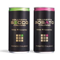 Al verschillende labels wagen (of waagden) zich eraan. Oil & Vinegar had het jaren geleden al (nu niet meer), en ook bij de Aldi verkopen ze van het Italiaanse merk Collinetta Secco een Vino Frizzante: bubbels in blikjes in de varianten rosé en wit.