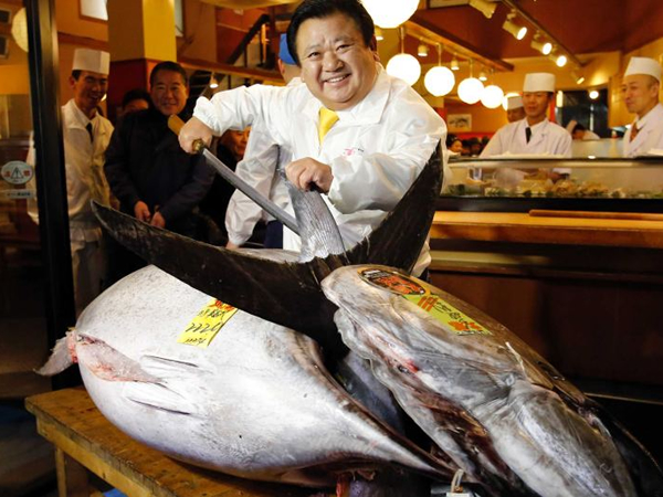Ieder jaar is het een groot feest in Tokyo wanneer de eerste tonijn van het jaar op de Tsukiji vismarkt geveild wordt. Ook dit jaar was het weer een succes en werden zelfs alle records verbroken met een Bluefin tonijn die over de toonbank ging voor een schamele €1.295.993,-.