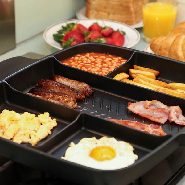 Het internet is in rep en roer: in de awesome MasterPan maak je een complete English Breakfast. Ja: een eitje, bacon, worstjes, hashbrowns… maar dan in één pan!