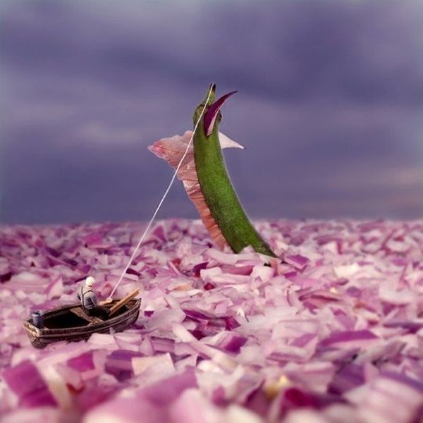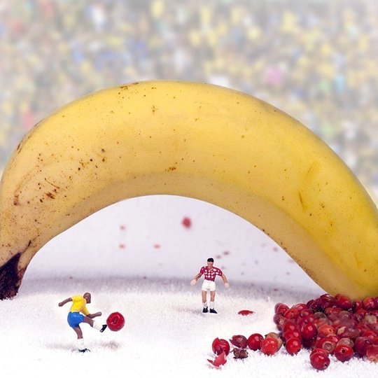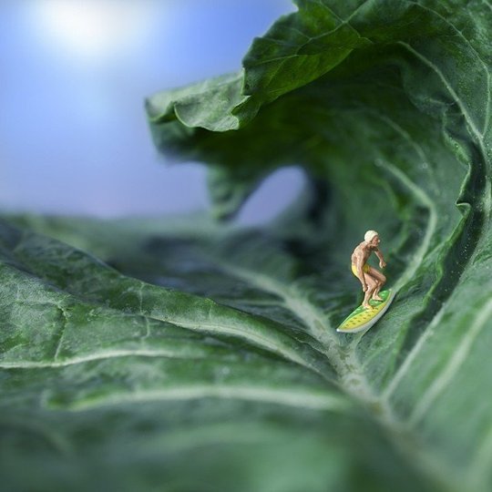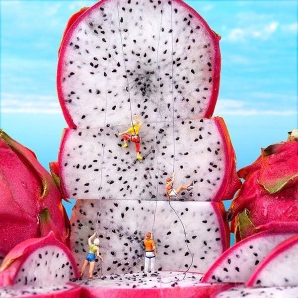 De Braziliaanse fotograaf William Kass is een hit op Instagram: hij creëert prachtige landschappen gemaakt van eten, voornamelijk groente en fruit. En daarin zien we mini mensjes hele normale dingen doen.