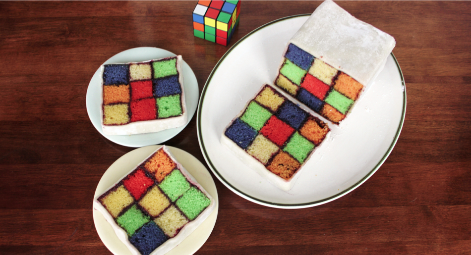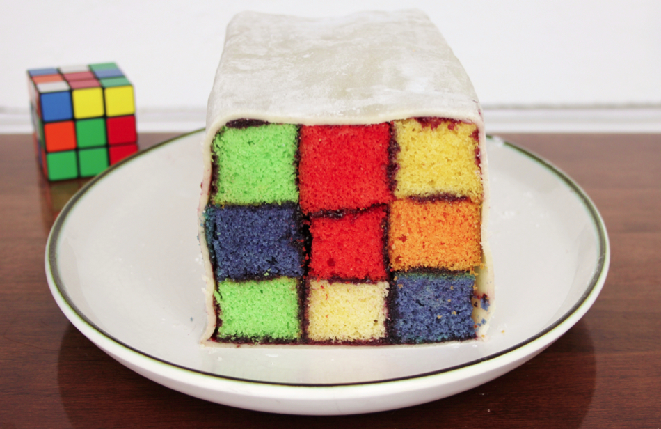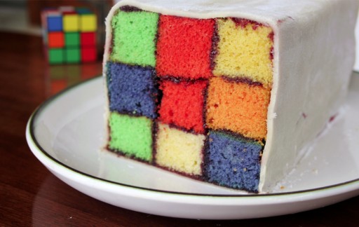 Nu mailde Vicky ons hoogstpersoonlijk om Culy te bedanken voor het mooie artikel. “I love your website and visit all the time. I was really excited when you featured my Breakfast for Dessert a couple of months ago!”. Vicky vroeg ons of we ook iets wilden schrijven over haar Rubik’s Cube (de bekende gekleurde kubus) cake. En natuurlijk willen we dat, want wij vinden deze cake echt fenomenaal.