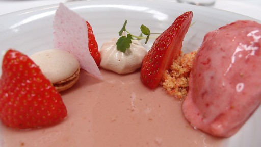En toen bleven er nog twee gerechtjes over. Het hoofdgerecht en het dessert, zogezegd (want qua grootte zijn ze ongeveer gelijk). We krijgen asperges met lamsnek en het dessert bestaat voornamelijk uit aardbei. Deze is trouwens vooral lekker omdat er zoveel verschillende texturen in te ontdekken zijn. De crunch, het ijs en het caramelletje: ze mixen goed in de mond. Al met al een waardige lunch voor de winnaar van afgelopen jaar dus. En dat belooft wat voor de rest van de tips in de gids. Wij gaan ‘m in ieder geval eens goed testen dit jaar.
