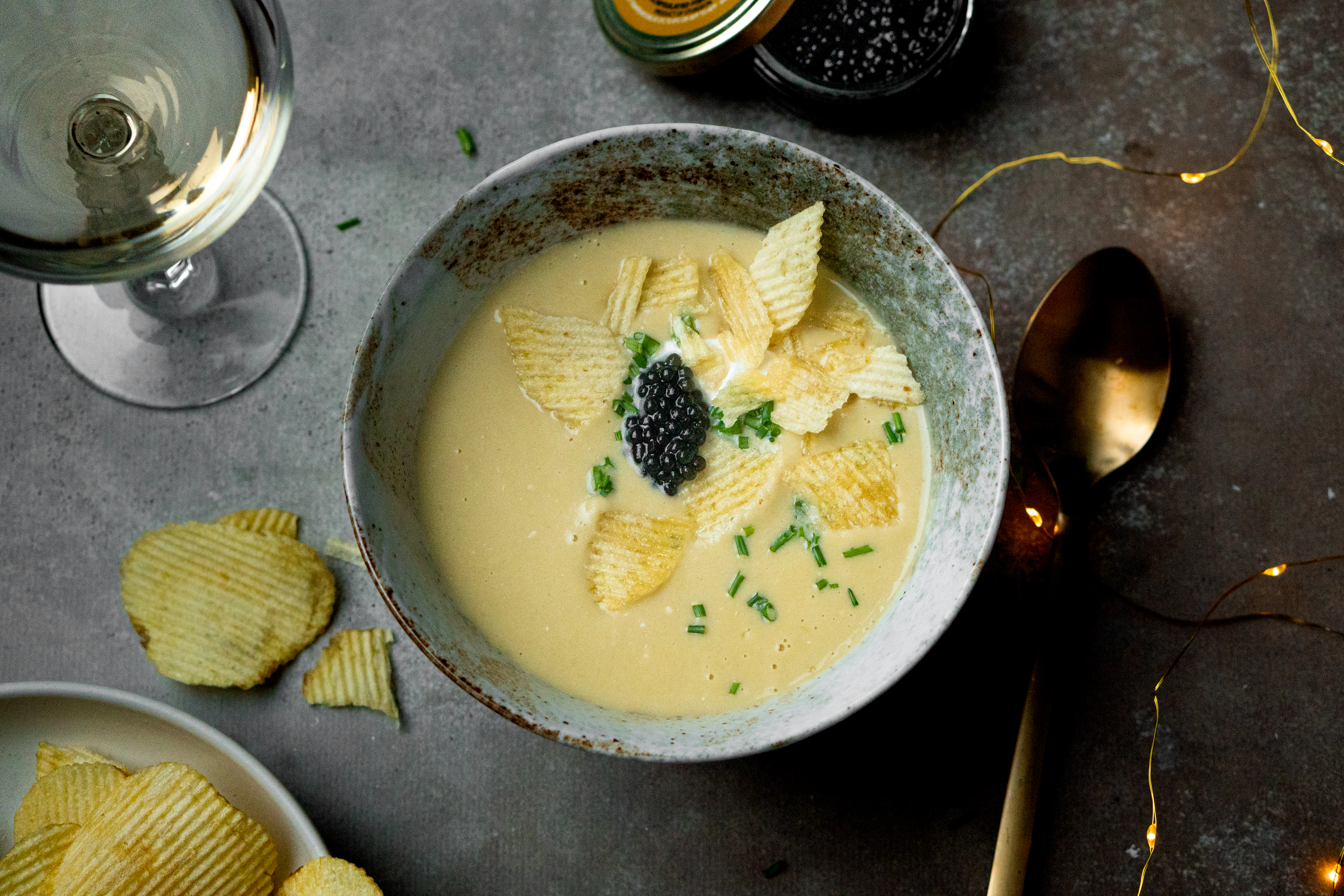 - Vichyssoise (romige aardappel-preisoep) met chips en ‘kaviaar’