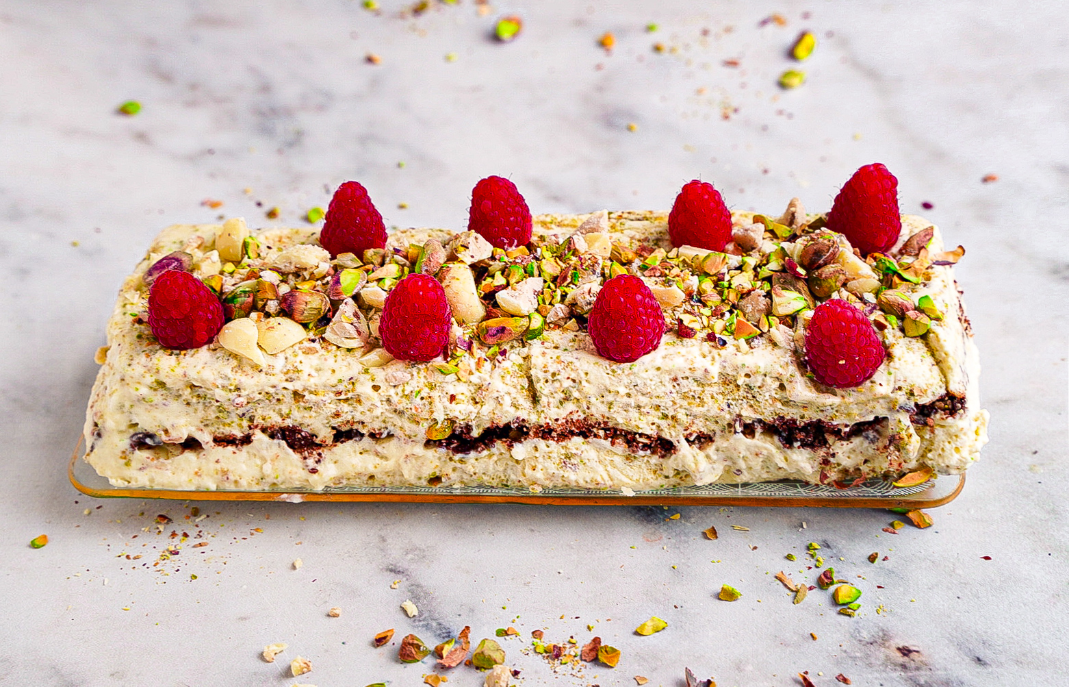 - Smeuïge chocoladetaart met koffie-meringue en hazelnoten