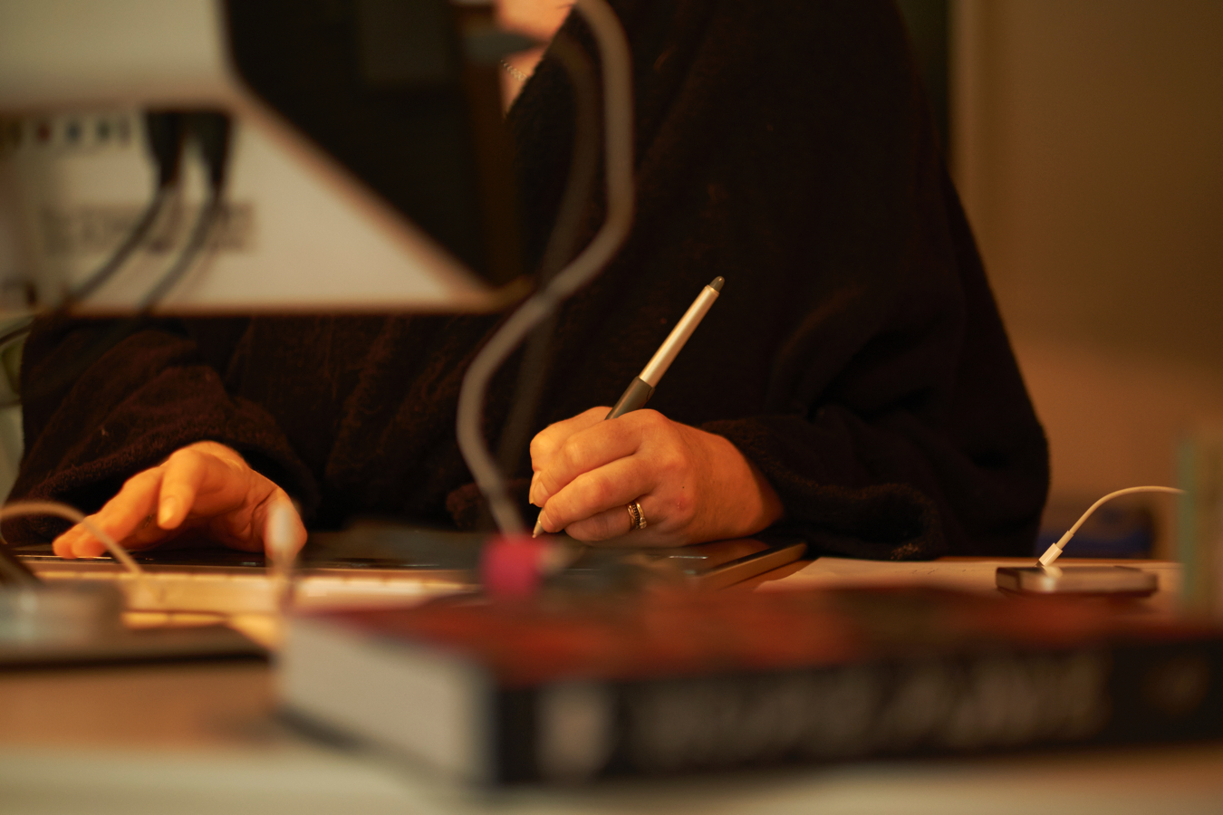 Tussendoor steeds achter de computer schuiven om correcties aan te brengen in receptuur, of beeld.