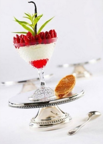 Citroen-verbena (ijzerkruid) ijs met verse frambozen bij Les Prés d’Eugénie in Parijs