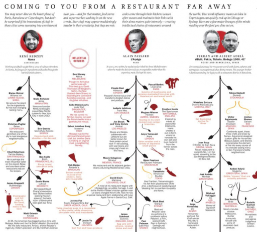 Time Magazine maakt een prachtig overzicht met de meest invloedrijke koks ter wereld. Klik hier om de afbeelding te zien. Het is even zoomen en scrollen, maar dat is het meer dan waard!