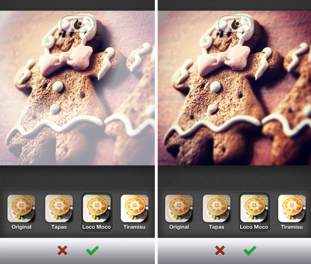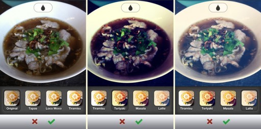 Waar we dachten dat Instagram de fijnste filters had, heeft Burpple 6 speciale filters ontwikkeld genaamd Tapas, Loco Moco, Tiramisu, Teriyaki, Masala en Latte. Naast deze bijzondere filters is er ook een blur-optie om de focus te leggen op speciale elementen in de foto.