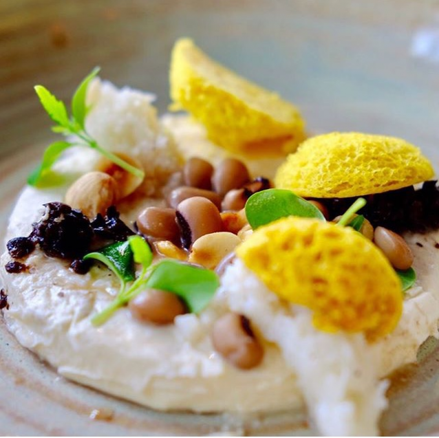 Door met het eerste hoofdgerecht. Voor Culy’s Monique is dat gegrilde little gem sla, geserveerd met een schuim van wortel en Franse dressing, in de vorm van een fris sorbetijs. Dit is absoluut de ster van het gerecht: wát een vondst om de saladedressing te serveren als ijs. Wij worden wel blij van deze warm-koud sensatie.