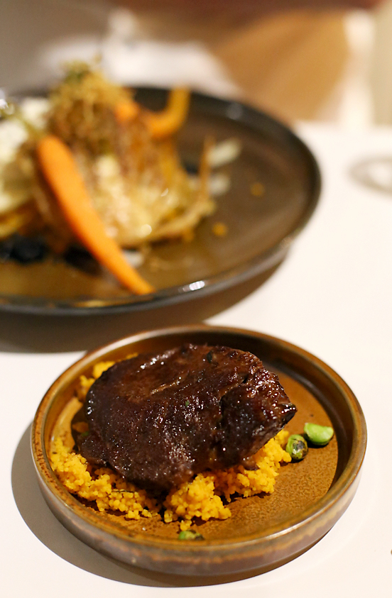 Erbij bestellen we de gestoofde kalfswangen met couscous, en dat blijkt ook een bijzonder smakelijk gerecht. Ook een flink grote portie voor een side, dus waar voor je geld.