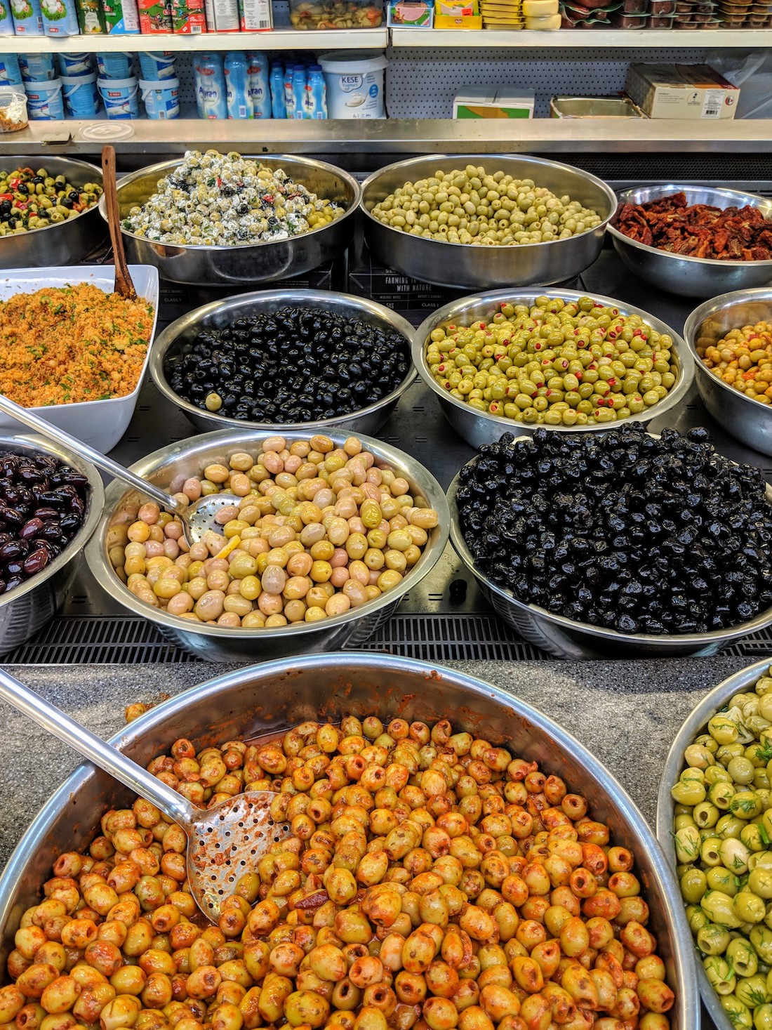 Over de hele markt zijn er olijven kraampjes te vinden, dus er is genoeg keuze en heel lekkere combinaties. Zo zijn er olijven met aubergine, olijven met gedroogde tomaten en olijven met feta. Genoeg om uit te kiezen dus. Vaak kan je bij deze kraampjes ook heerlijke couscous vinden, ook het proberen waard.