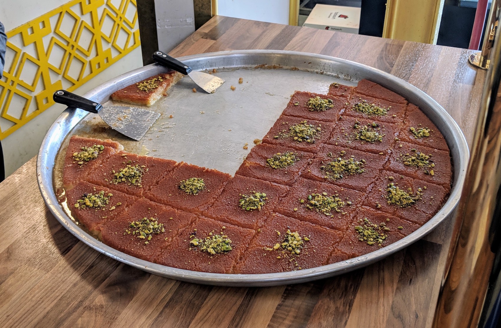 Iedereen kent wel baklava, maar van warme baklava met mozzarella en suiker hadden wij nog nooit gehoord. Die blijkt verrassend lekker. Eigenaar Mohamed Andib staat ze elke vrijdag vers te bereiden, zodat ze zaterdagochtend meteen klaar zijn voor de eerste klanten. Je kunt de zoete baklava vinden bij de stand Tarboosh Sweets in de Mihrab in de Passage.