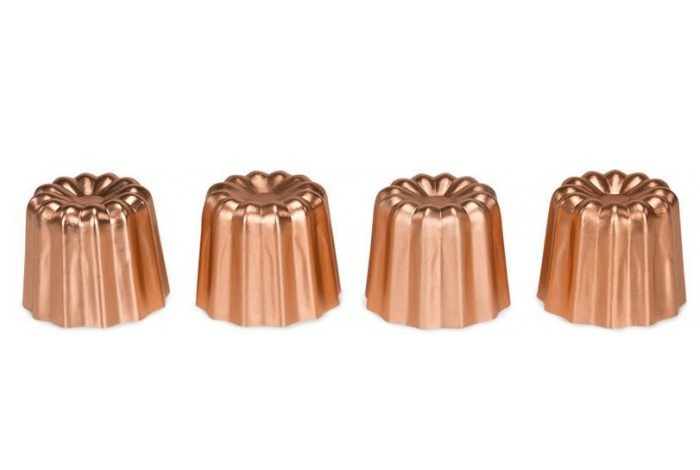 > Koperen vormpjes om cannelés te maken, €25,50 via bouwhuis.com
